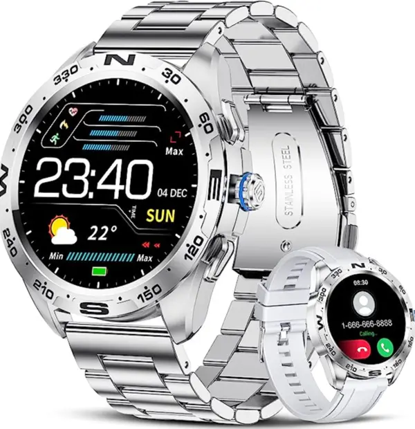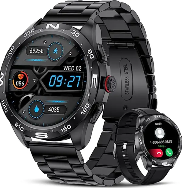 Blood Pressure Monitor, Activity Tracker, Alarm Clock, Phone call, Notifications