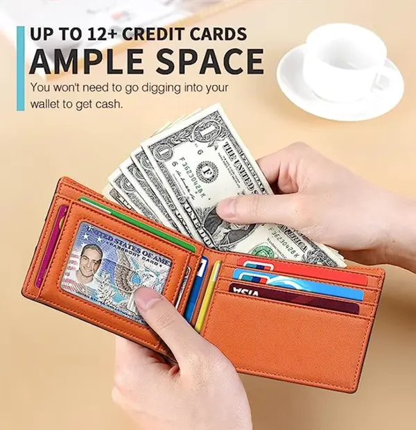 Slim Wallet for Men - RUNBOX large capacity wallets offer 12+ cards pockets and 1 bill compartment to meet everyday carry needs, the money pocket help comfortably store up to 15 bills, banknotes, the thin bifold wallet is ideal for carrying business cards, credit and debit cards. Comfortable in the front and rear pockets.