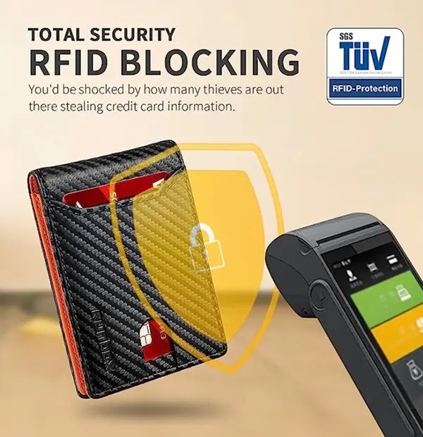 Rfid Blocking Protection - Our rfid mens wallets are equipped with advanced RFID security technology, unique metal composites, Your credit cards, debit cards, driving license and ID cards will be protected effectively. Block the 13.56 MHz band and protect against data theft by RFID scanners.