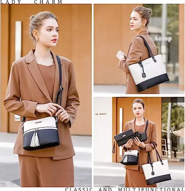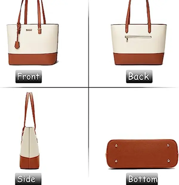 - Diffrent Ways to Carry: Leather Tote---You can use this as large tote bag to carry your stuffs when you going out; Shoulder Purse---It contains one adjuatbel shoulder strap so you can carry it a shoulder bag as well;Crossbody---you can carry it as a cross body purse when your hands are not free(like when you are carrying your baby/kids); Book Bag/Laptop Bag---It is just perfect size, it can fit 11''Mac and ipad very well.