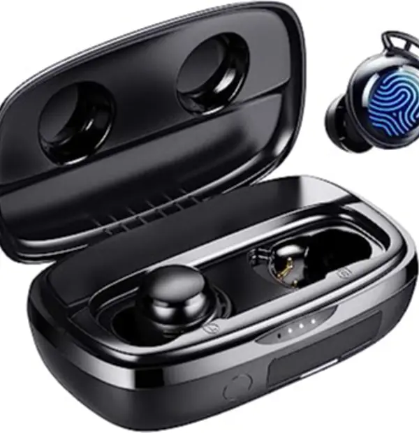 Long-lasting Battery(100H playtime) - Get up to 5hrs music playback per charge, and up to 100hrs with the charging case for wireless headphones. You can also use the charging case as a power bank for your phone.