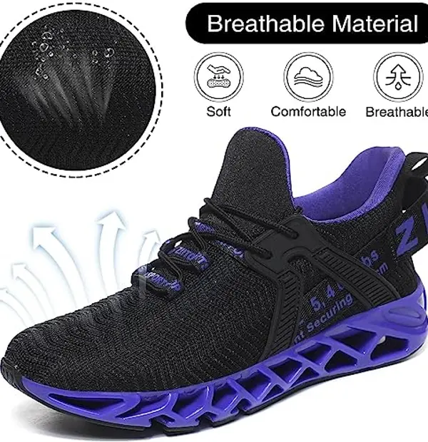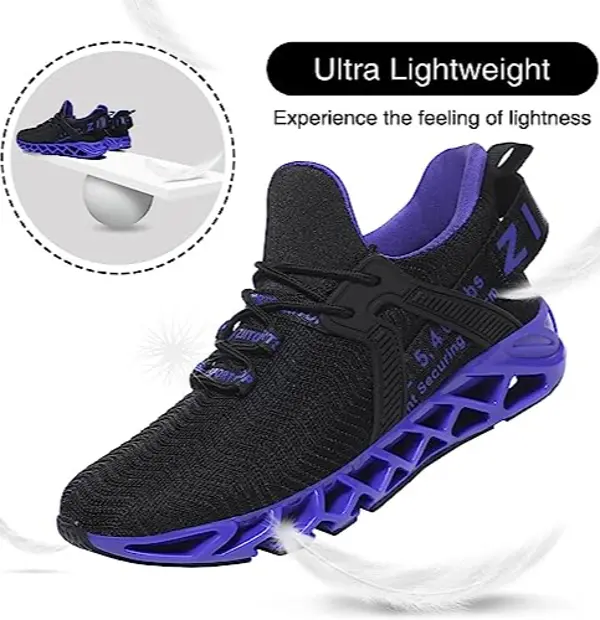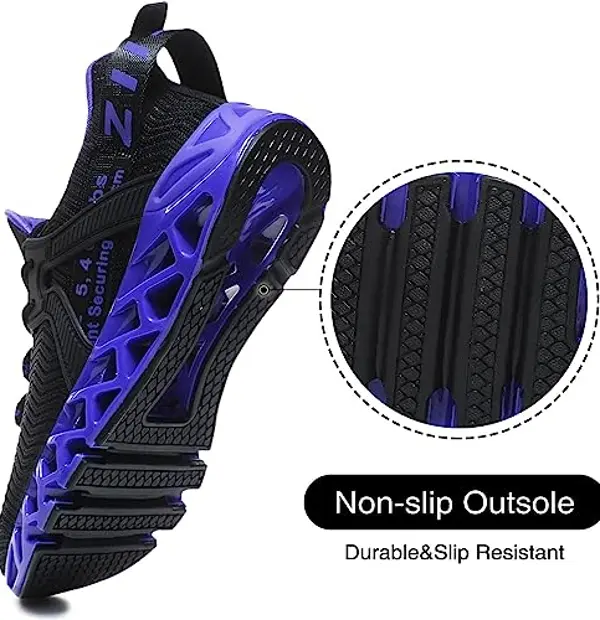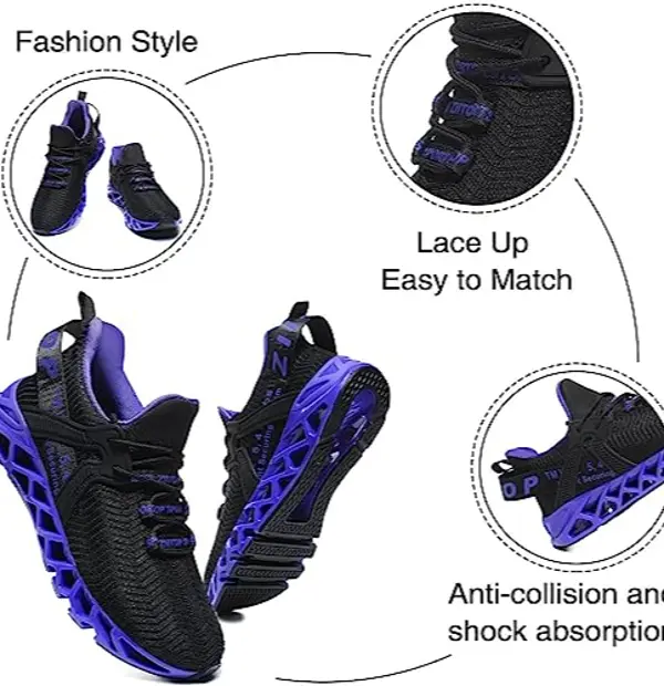 - Blade Soles: Made of TPU rubberskeleton design increases shock absorption flexible and stylish comfort, it also performs well enough in durability to maintain good cushioning performance even after experiencing simulated impact.